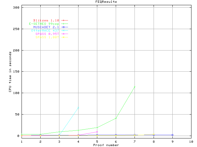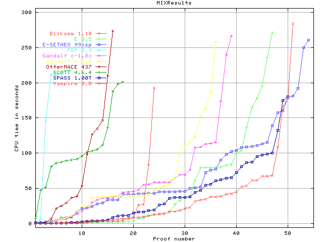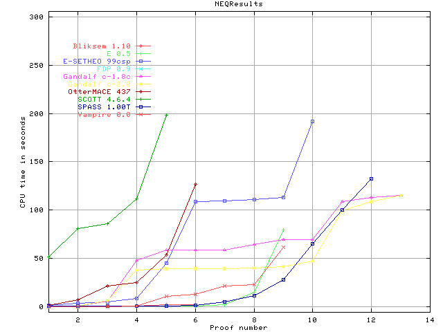 | Average proof times | MIX ( HEQ HNE NEQ NNE PEQ ), UEQ, SAT, FOF ( FEQ FNE ) |